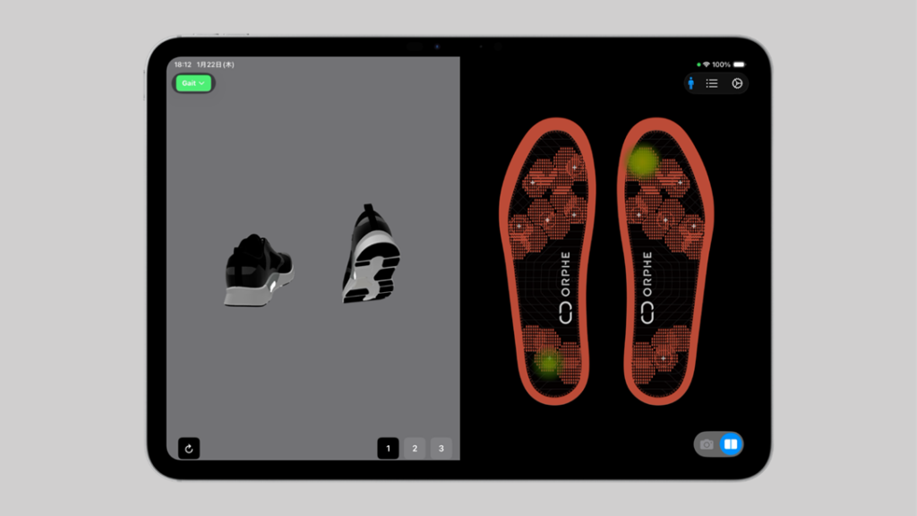 「ORPHE(オルフェ)」を一言で言えば、高度な分析コンピューターを内蔵した靴のインソールです。インソールに内蔵されたコンピューターによって、1秒間に200回という頻度で足の動きを測定し、歩き方を数値化します。歩幅や速度はもちろんのこと、着地したときの足の角度、地面を蹴り出す強さ、さらには左右の荷重バランスまで、目に見えない動きをすべてデータ化してくれます。測定されたデータはBluetooth経由でスマホに送られ、自分の歩き方の「癖」をグラフやスコアで確認することが可能です。